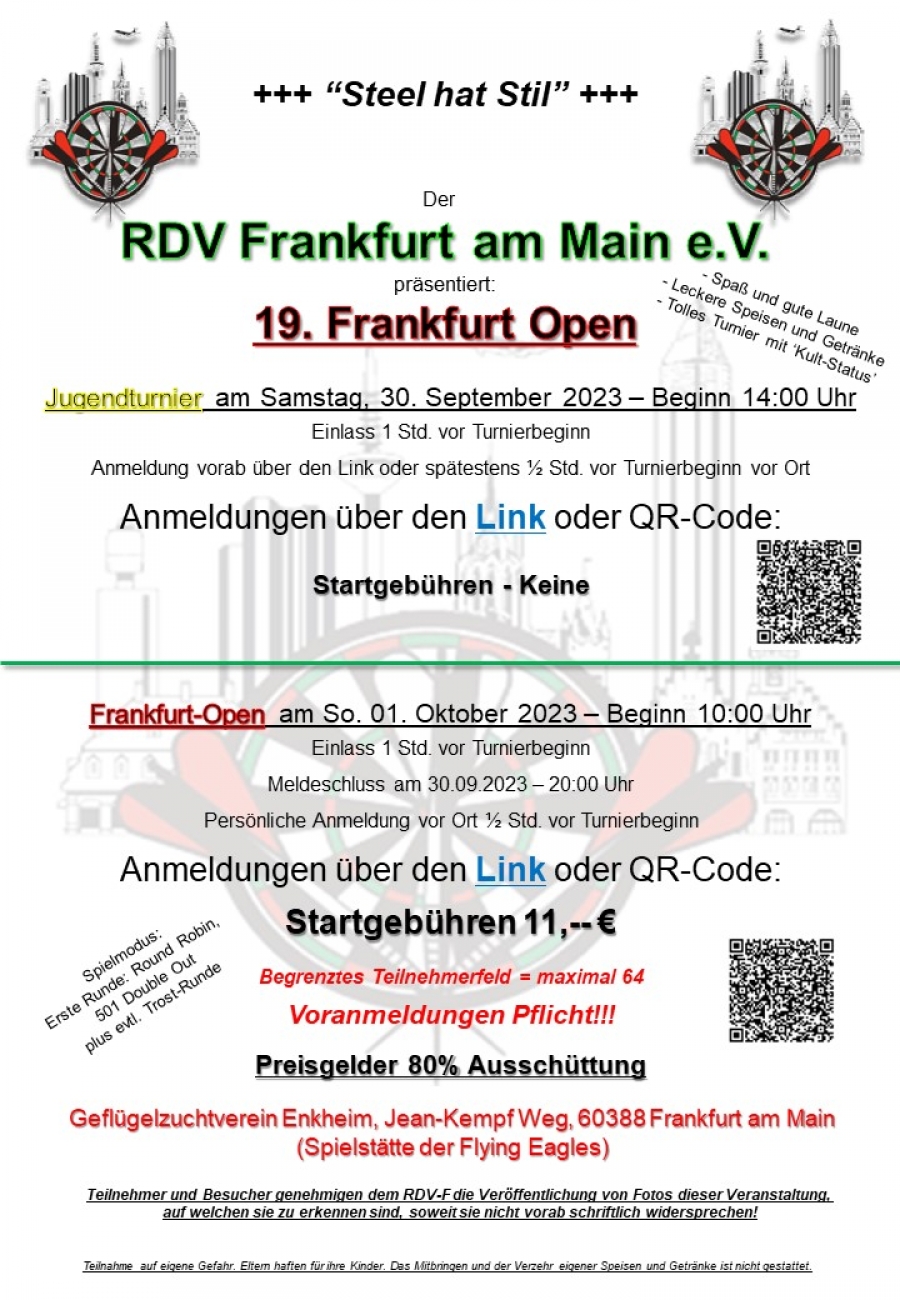 Die 19. Frankfurt Open stehen an und die Ausschreibung für unser Turnier ist da!